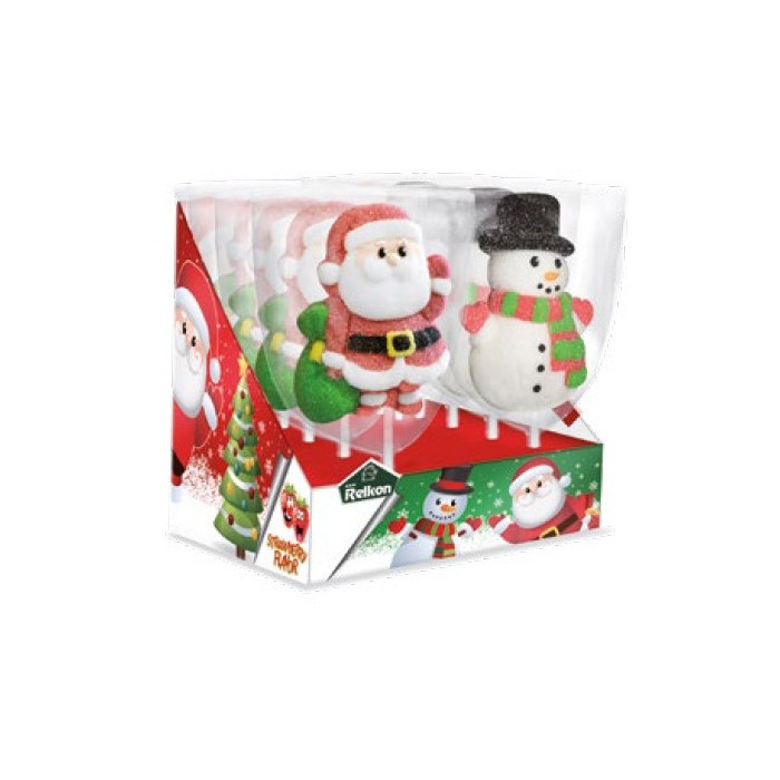 Spiedini di marshmallow natalizi ricoperti di zucchero, raffigurante un simpaticissimo alberello addobbato, a forma di Babbo Natale, un buffissimo pupazzo di neve e una dolcissima renna. Dimensioni cm 8 x 10. Grammi 45