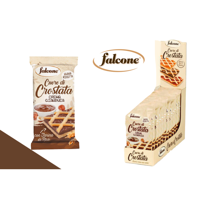 Si chiamano Cuor di Crostata perché Falcone ti offre solo la parte migliore della crostata, tanto ripieno e niente crosta. Le crostate alla crema gianduia sono preparate con farina di riso e sono arricchite da un delizioso ripieno al gianduia.
