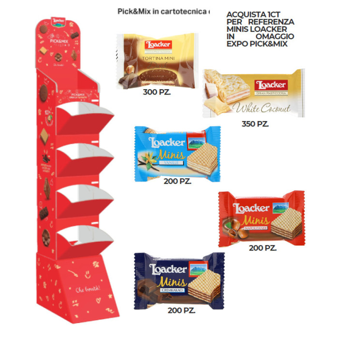Acquista una categoria per referenza di Minis e in omaggio avrai l'espositore Pick & Mix.