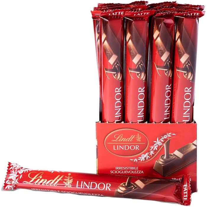 Lindor Snack Barretta E' Un Goloso Snack, Di Finissimo Cioccolato Al Latte, Racchiude Un Morbido Ripieno, Dall'irresistibile Scioglievolezza. Confezione Da 24 Barrette da 38gr cad.