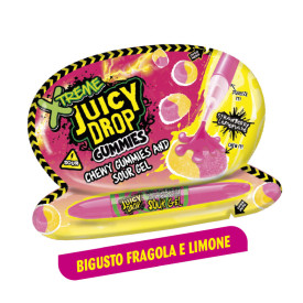 Caramelle gommose sabbiate con un piccolo foro perfetto per essere riempito con la penna gel acida che viene fornita in ogni busta. Riempi le tue caramelle gommose fino all’orlo per una delizia super acida! Il tuo mix perfetto di agrodolce. Bigusto CILIEGIA E LAMPONE, FRAGOLA E LIMONE, GUSTO COLA.