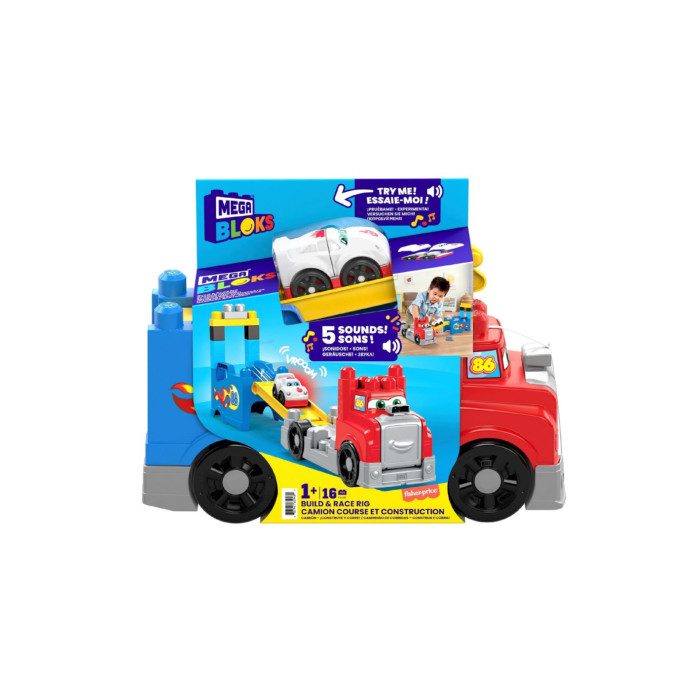 Preparati a vivere emozionanti avventure di corse con il set MEGA Bloks Build & Race Rig. Questo set di gioco interattivo include un grande camion e un'auto da corsa costruibile che emette veri suoni di gara, offrendo ore di gioco coinvolgente per i piccoli appassionati di corse.