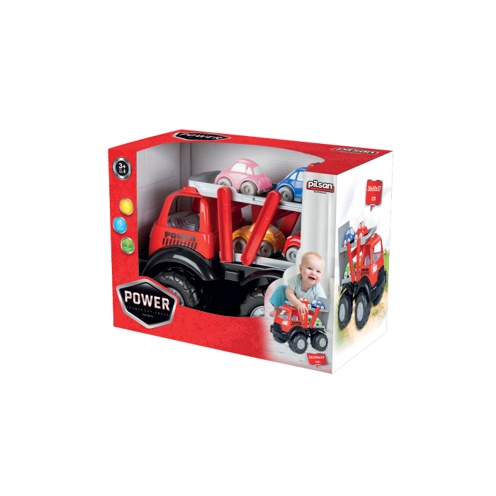 Età di utilizzo 3+. 4 auto di diversi colori e modelli. Design estetico. Infrangibile, durevole e robusto. Portellone posteriore mobile e rampa di carico.