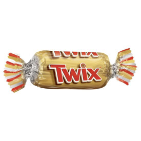 TWIX Miniatures. Biscotto gustoso e croccante, con delizioso caramello e morbido cioccolato al latte. Biscotto (24%) e mou (30%) ricoperti di cioccolato al latte (39%).