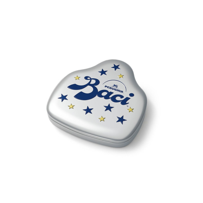 Design iconico: una latta sagomata a forma del celebre Bacio Perugina, originale e raffinata, perfetta come oggetto da collezione o confezione regalo. Gusto classico fondente Luisa: ciascuna pralina combina il sapore intenso del cioccolato fondente con il ripieno a base di gianduia e nocciole intere, secondo la ricetta storica. La confezione da 150 g custodisce ben 12 Baci Perugina Classico Fondente Luisa.