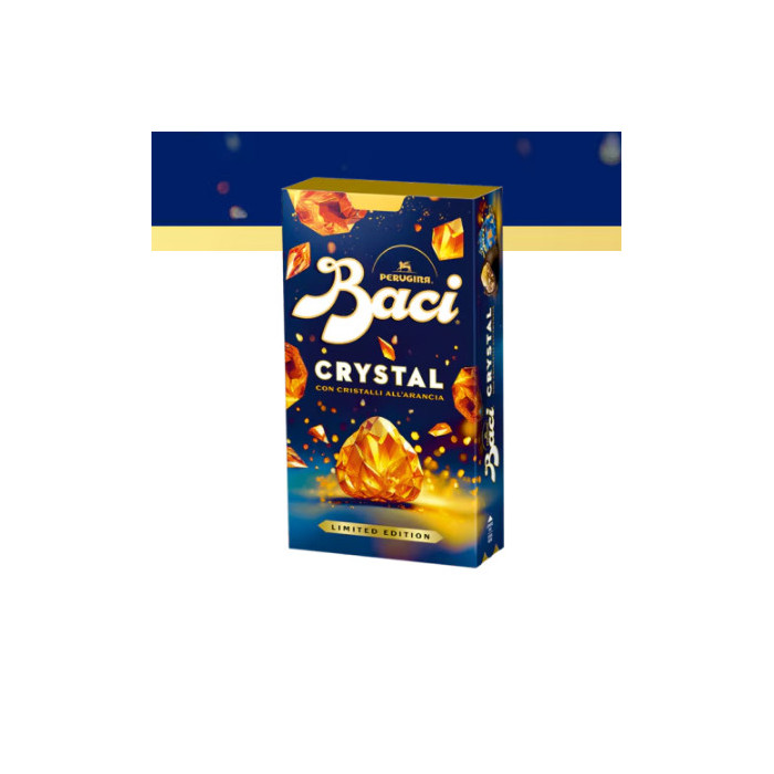 Baci® Perugina® Crystal in formato Bijou trasforma ogni cioccolatino in un piccolo gioiello da assaporare o condividere in un momento speciale. La Limited Edition che unisce il pregiato cioccolato Fondente Luisa® e le vivaci note agrumate dell’arancia, si presenta in un’elegante confezione da 12 pezzi, pensata per un gesto raffinato o una coccola da condividere.