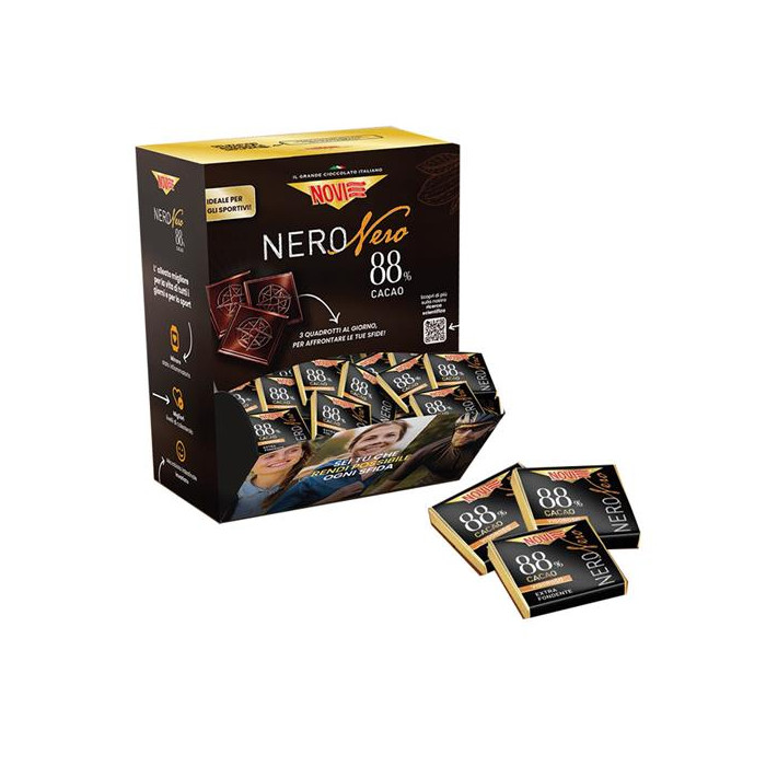 Grazie alla presenza di polifenoli e al ridotto contenuto di zuccheri (solamente il 10%), Novi Nero Nero 88% Cacao è un cioccolato ideale da degustare in più momenti della tua giornata: dalla colazione al dopopasto, un quadrotto che può accompagnarti.