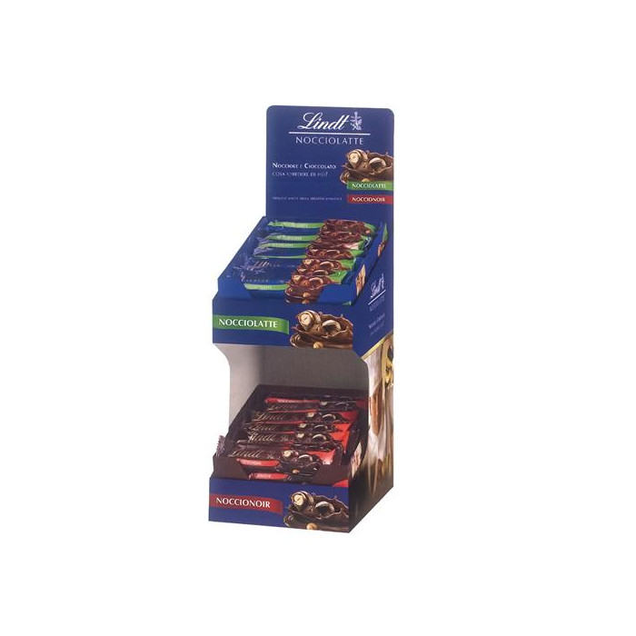 EXPO SNACK LINDT NOCCIOLATTE E NOCCIONOIR LA NOVITA' CREATA DAI MAITRE CHOCOLATIERS LINDT CON IL MIGLIOR CIOCCOLATO E NOCCIOLE SELEZIONATE. TRE PIACERI IN UNO: CIOCCOLATO DI ALTA QUALITA', DELICATO RIPIENO CREMOSO E CROCCONATE NOCCIOLE INTERE. EXPO SNACK LINDT NOCCIOLATTE E NOCCIONOIR E' COMPOSTO DA 18 PEZZI DI LINDT NOCCIOLATTE E 18 PEZZI DI LINDT NOCCIONOIR. CONFEZIONE DA 36 PEZZI.