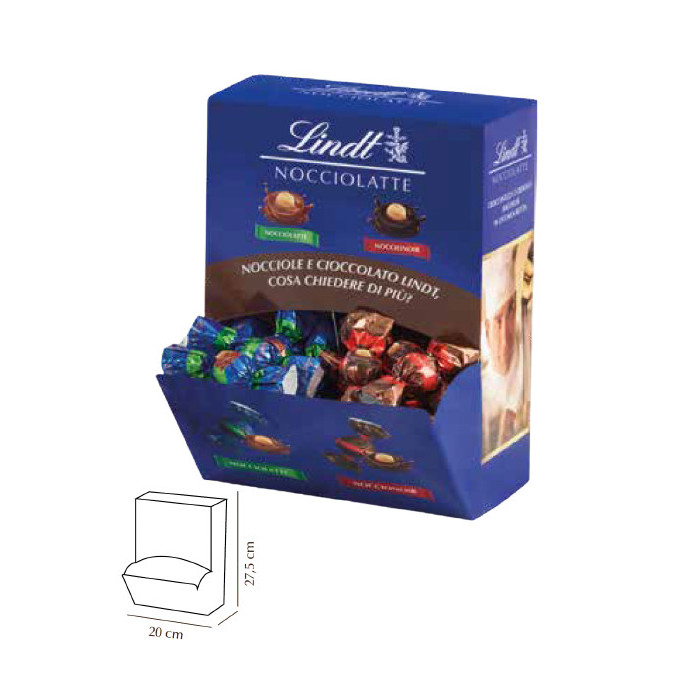 Una croccante nocciola avvolta da una morbida crema e ricoperta di cioccolato al latte o fondente. 112pz