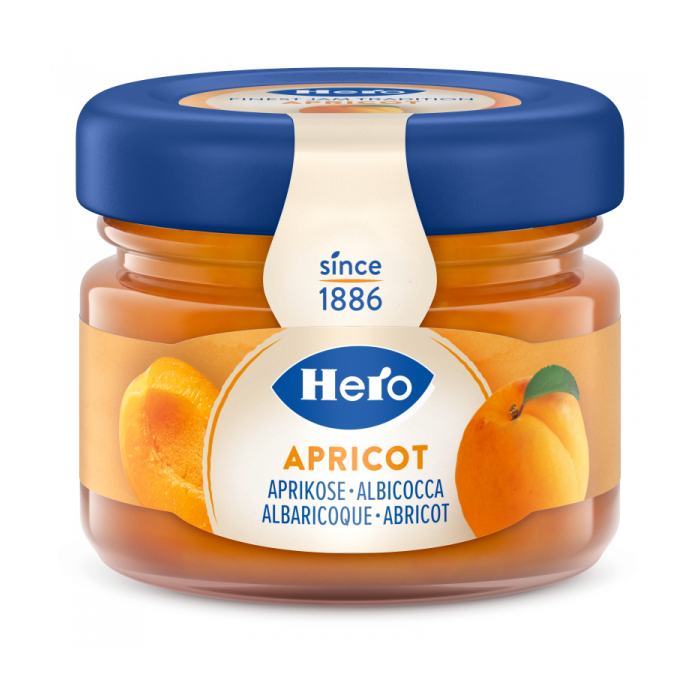 Confettura Extra di Albiccocche, eleganza ed esclusività per il top di gamma dell'offerta Hero in monoporzione.
