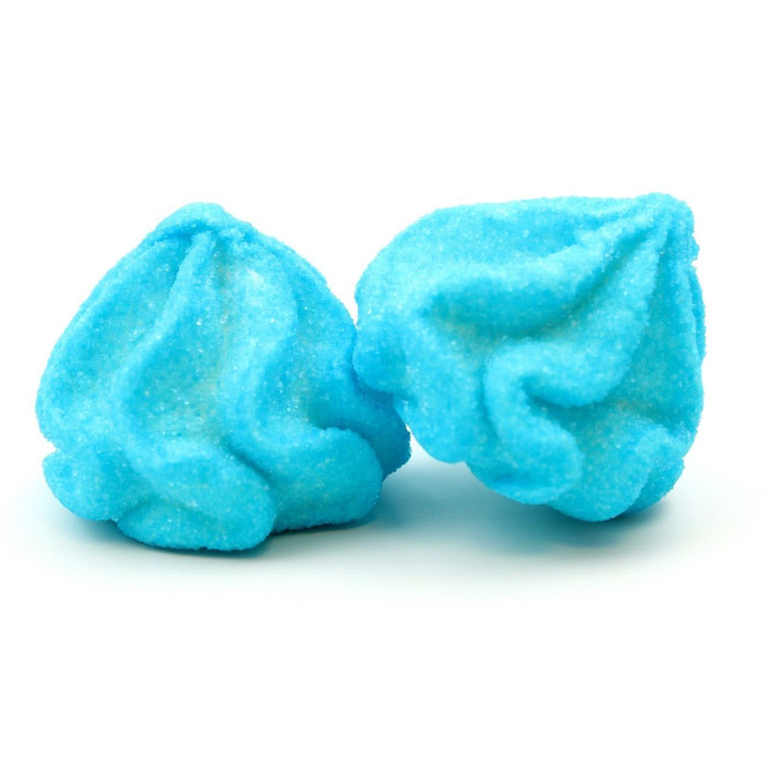 Marshmallow Fiamme blu 9 g pz. Busta 900 g gusto frutti di bosco. Marshmallow Bulgari senza glutine a forma di ricciolo di meringa.