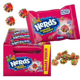 Le Nerds Gummy Clusters Fruits sono caramelle gommose croccanti all'esterno e morbide all'interno. Sono caramelle gommose rotonde dal delizioso sapore di frutta, racchiuse nel classico Nerds, famoso in tutto il mondo.