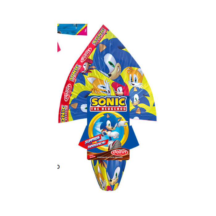 Uovo di cioccolato al latte con sorpresa (cacao 34% min.). Con sorpresa Sonic.